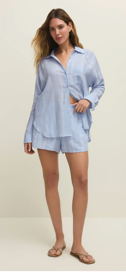 Made of a soft linen blend, these stripe shorts bring a stylish ease to any look. A daily essential, these comfy bottoms feature side pockets, an elastic waistband, and a lightweight feel. We like to pair it with a button up top for an effortless look.